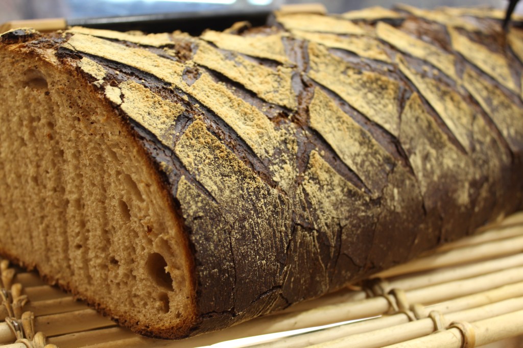 Le best seller du lieu, celui qui s’appelle comme le nom de la boulangerie/ pâtisserie: le pain Rega’Lou, avec farine de tradition T65, farine de meule T80, et pré fermentation: poolish au miel