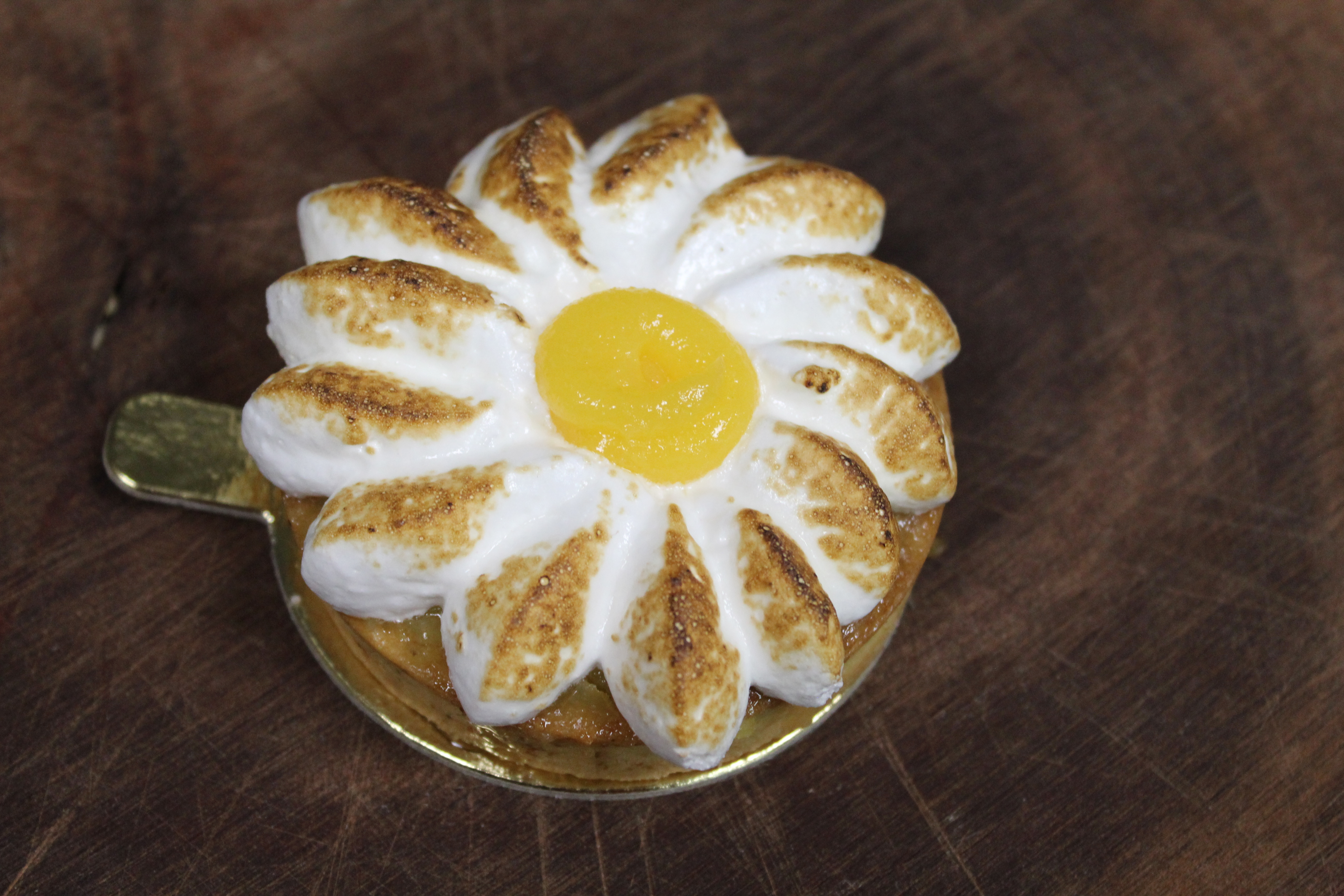 Pâte sucrée, crémeux citron, léger nappage et zeste de citron, meringue Italienne