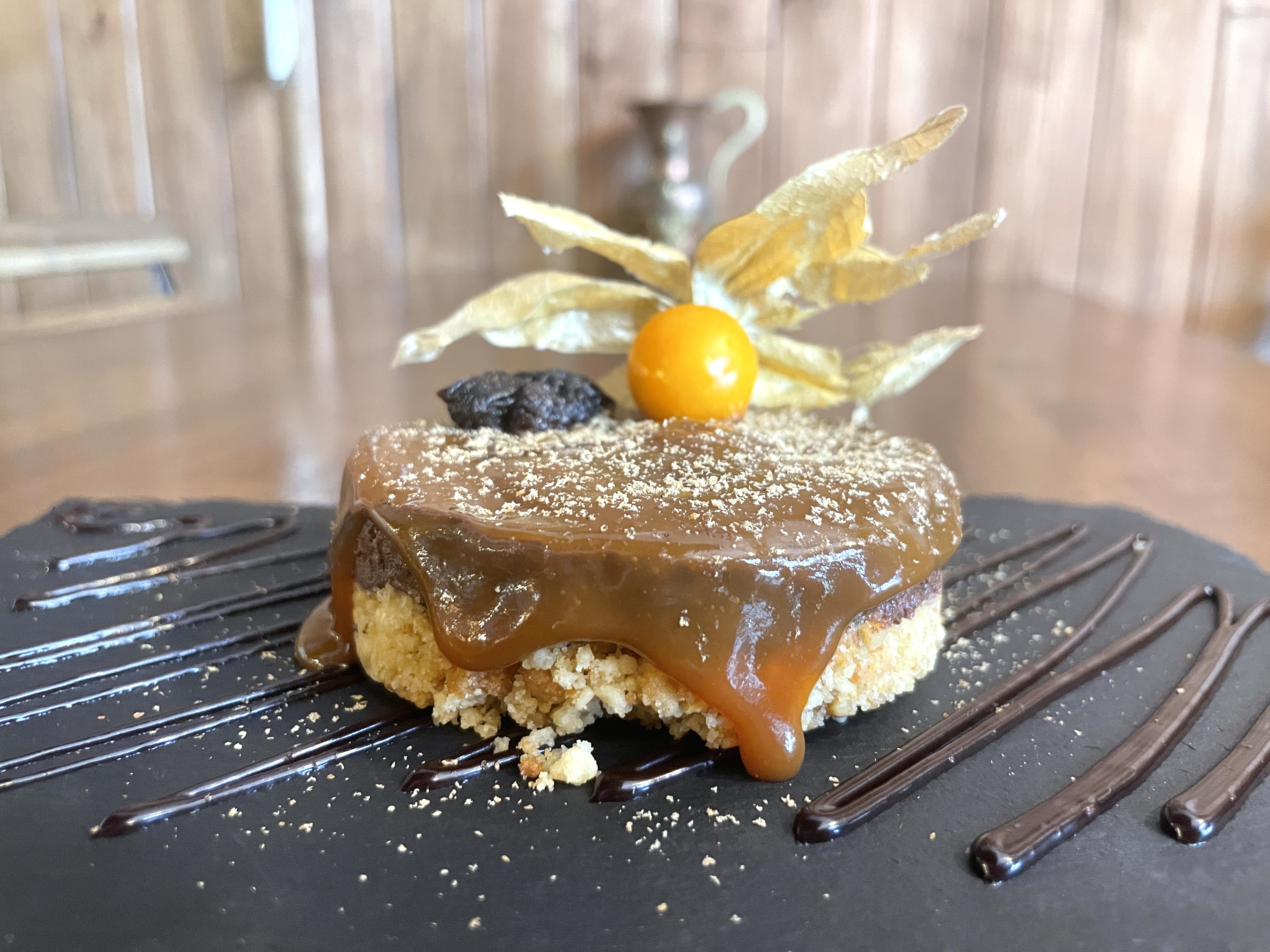 Côté sucré, la tarte chocolat est un pur régal, composée de crumble, de chocolat noir, de caramel beurre salé et de fève Tonka! Juste ce qu’il faut en goût chocolaté, en caramel, un équilibre des deux vraiment bien réussi, j’ai adoré!