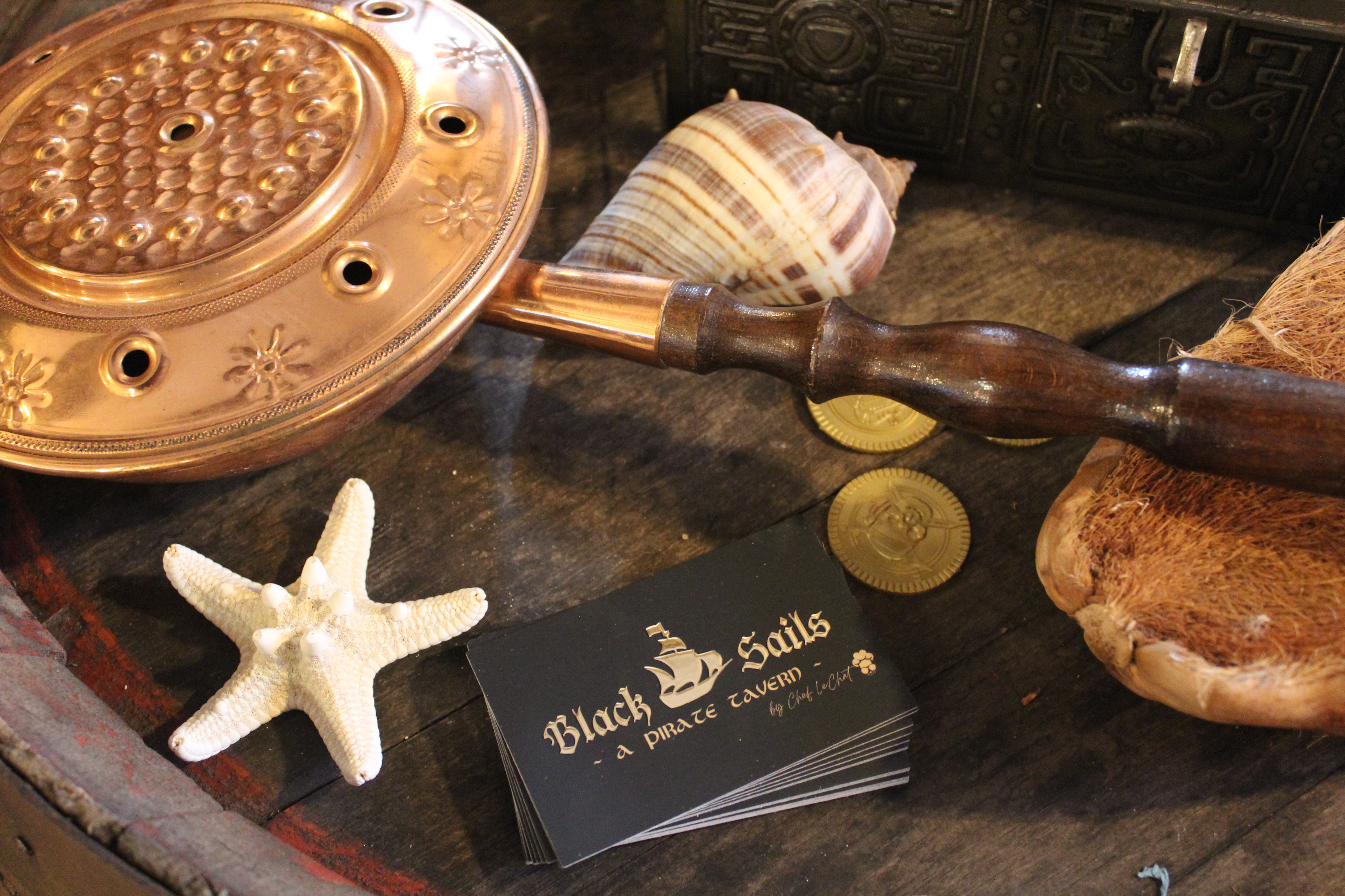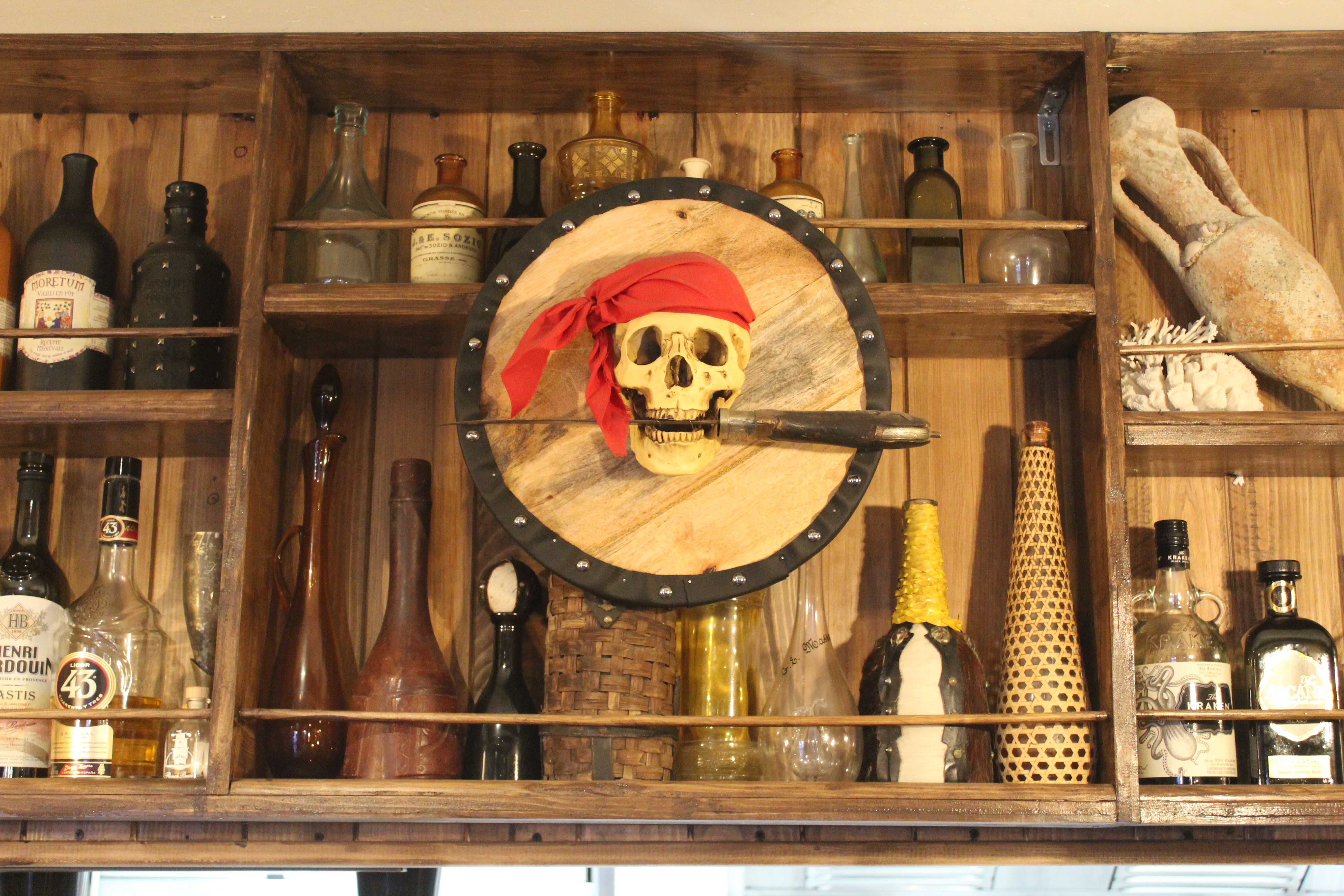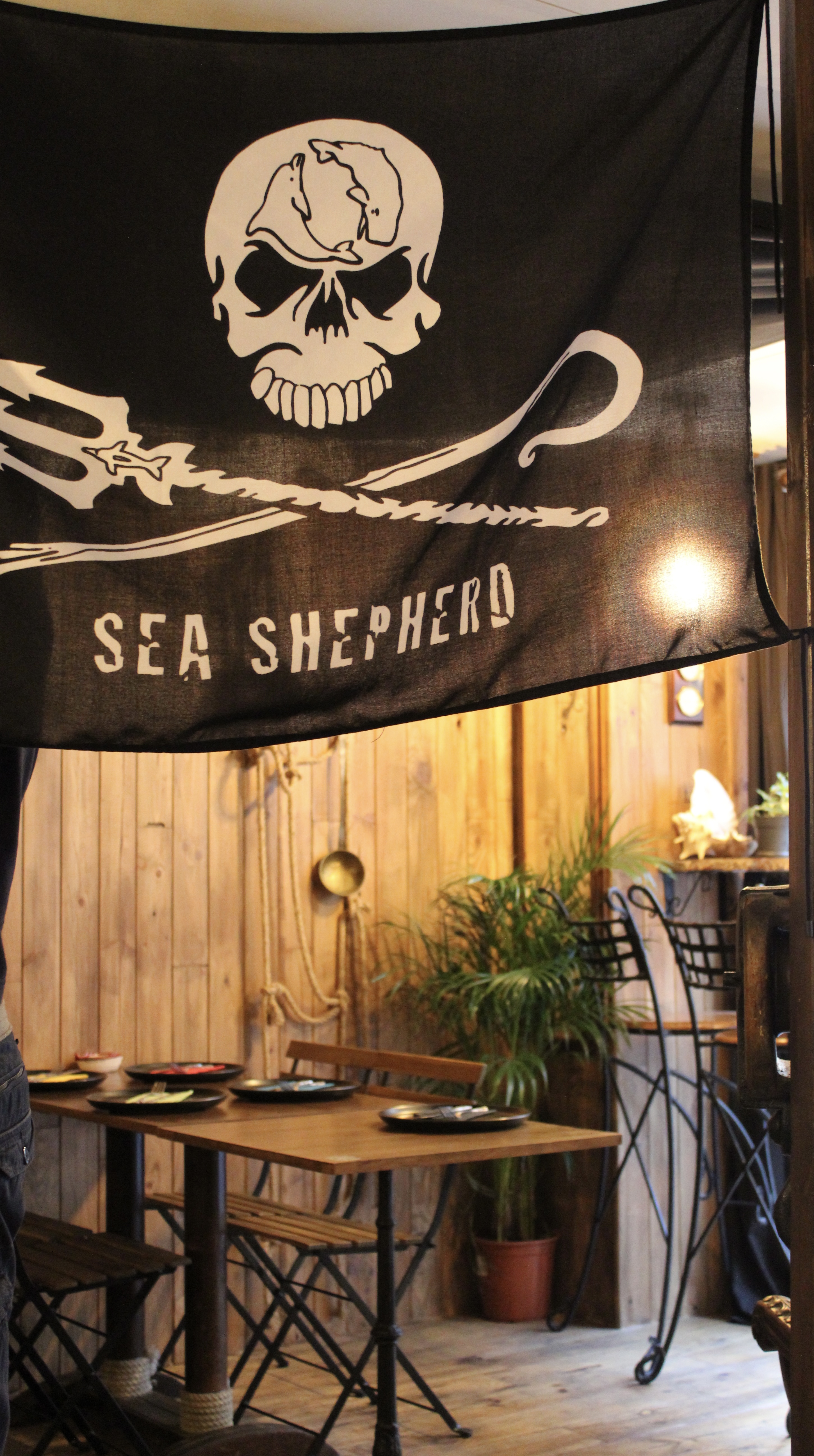 Et c’est très réussi! Dès que l’on arrive, on est plongé dans l’univers des Pirates, une décoration de fou dans les moindres détails, du menu en passant par les couverts, les petits verres à shot, les objets aux murs, aux plafonds et même jusqu’aux toilettes!