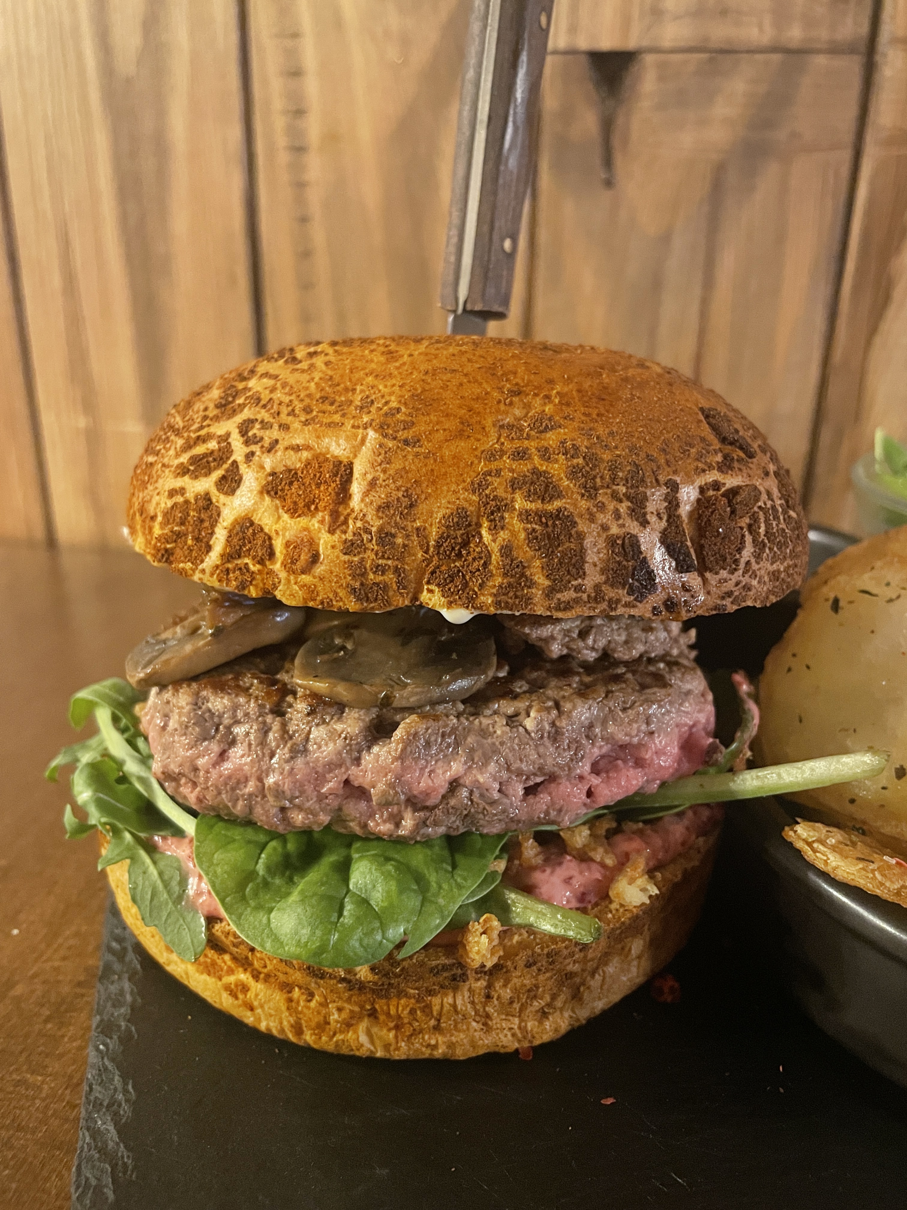 Le restaurant a ouvert ses portes en Février 2022, c’était la suite logique du foodtruck qu’ils avaient depuis la saison précédente. Le but étant d’avoir un lieu à eux à l’année où proposer leur cuisine! Ils ont gardé le concept du burger, qu’ils faisaient avec leur foodtruck (et ils ont bien fait!), et ils ont élargi le choix à la carte avec des viandes comme du magret de canard, de la bavette etc