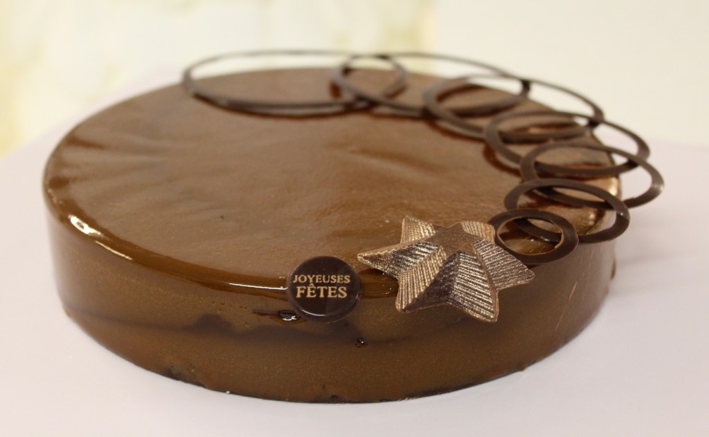 Nous avons également pu découvrir l’entremets proposé pour le Nouvel An appelé l’Etoile Filante, composé d’une mousse chocolat noir, d’un confit bergamotte et d’un biscuit pain d’épice.