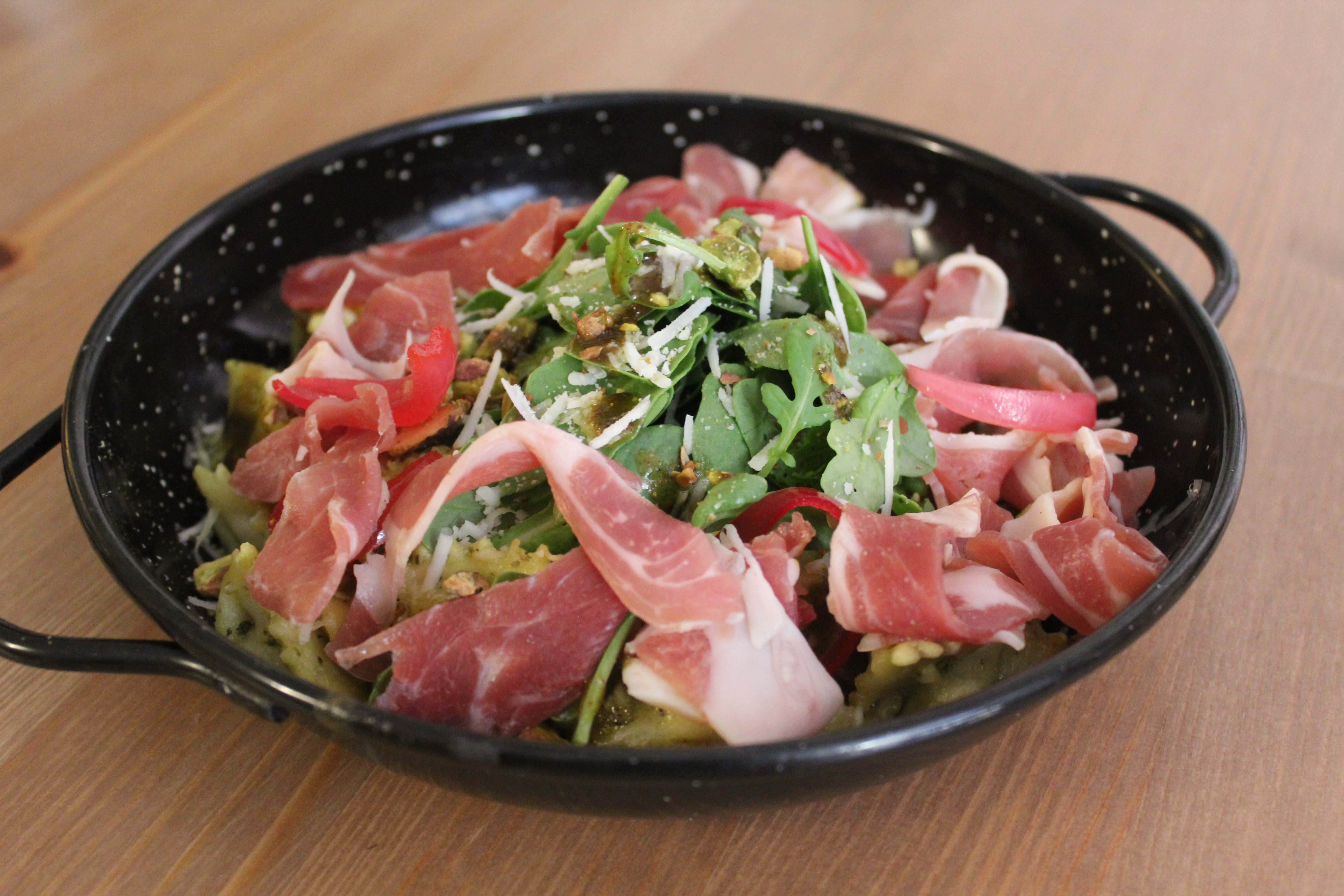 Le petit Kéké: ravioli citron et basilic de notre ami Marco, pecorino, jambon cru et perso de pistache