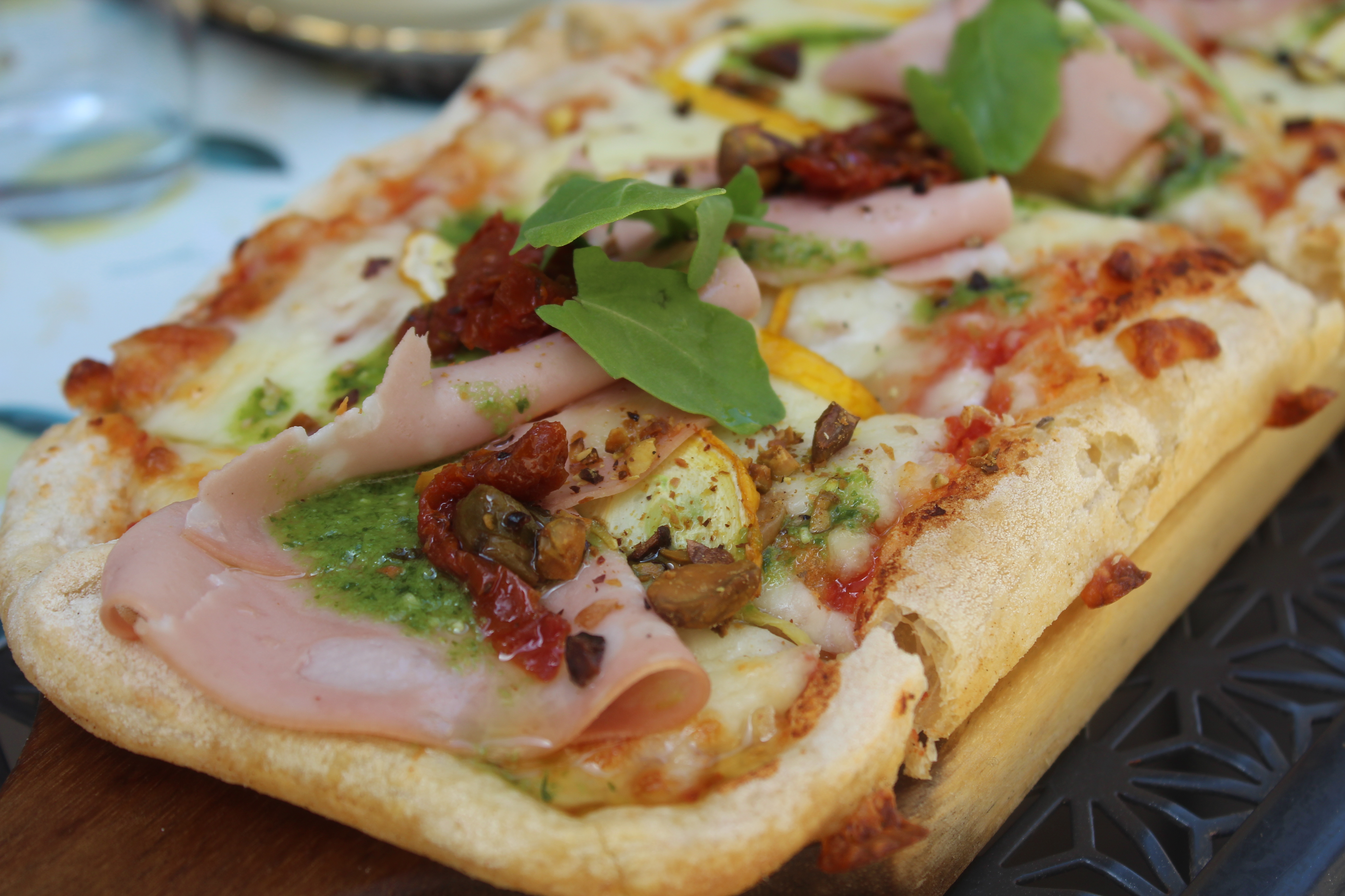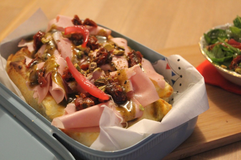 Le casse-croûte de Mamoune: foccacia à la mortadelle, cream cheese à la pistache