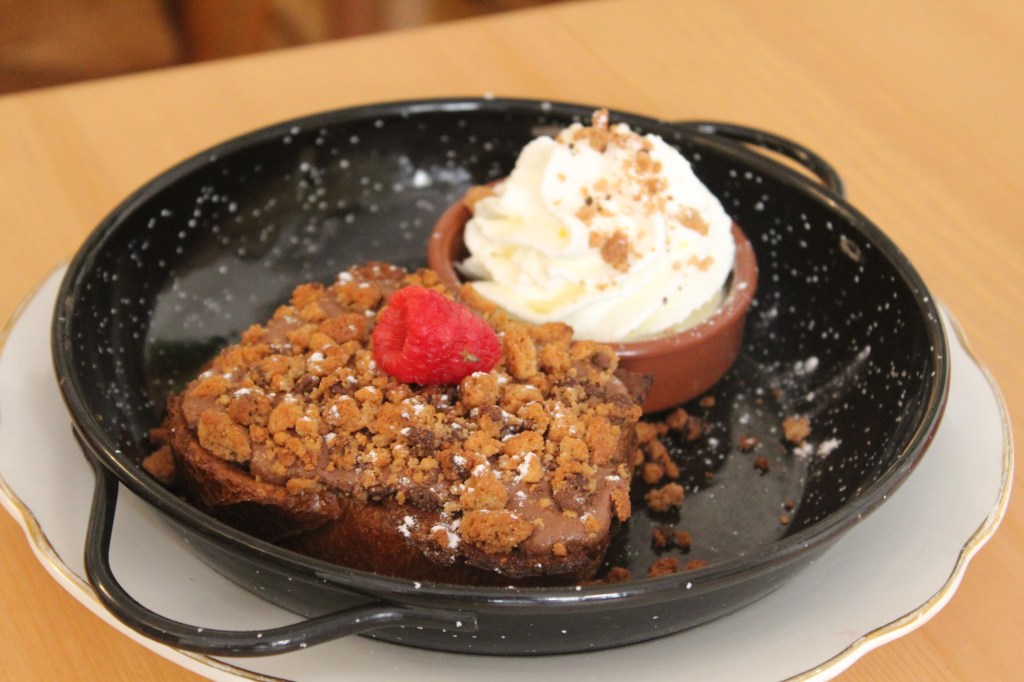 Le goûter de Kéké: brioche perdue et croustillant cookie, avec de la chantilly maison
