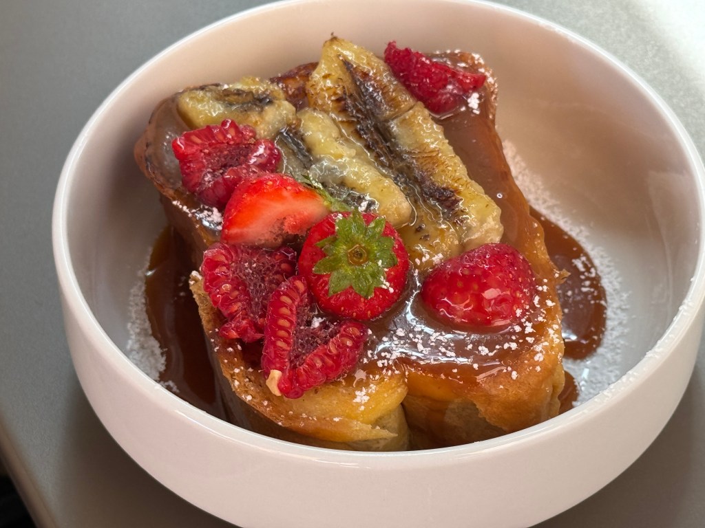 Concernant la partie food, ils essaient de faire une carte à leur image avec des choses qu’ils aiment, gourmandes et saines (étant tous les deux athlètes, c’est un point important pour eux). Celle-ci évolue en fonction des saisons, de leurs envies, avec des plats et ou desserts du jour. Ils proposent des brunchs les jeudis et les samedis car dans la région, il est rare que l’on puisse bruncher un jour de semaine? Dans le brunch, on peut retrouver le fameux avocado toast, le Bagel saumon et sans oublier leurs amis vegan avec le toast Vegan. Ils sont une formule à 25€ avec un choix salé, un dessert, une boisson chaude et un jus de fruits. J’ai goûté le banana bread d’Emy (un régal!)